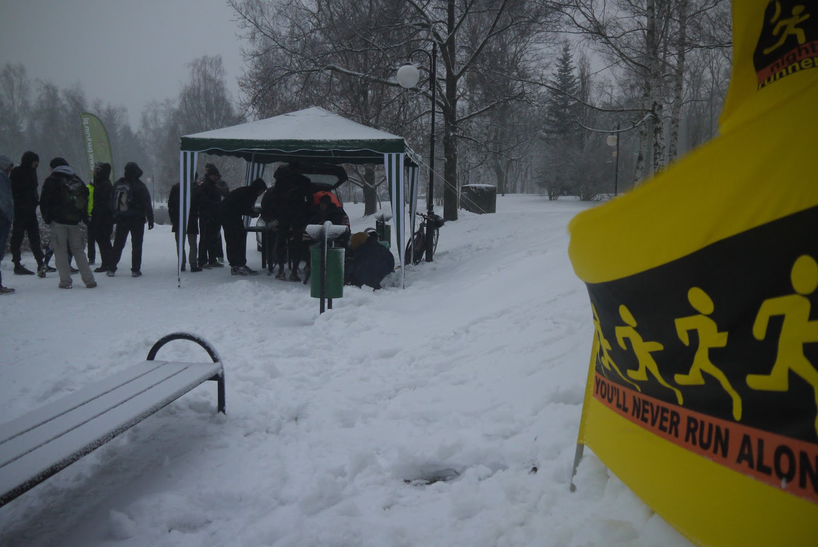 Ponad 80 osób wspólnie przebyło w sobotni wieczór 42,195 metrów w czasie 3h21min40s.Wielkie brawa dla Was wszystkich za zabawę, którą stworzyliśmy, nie bacząc na śniegi i wiatr, który atakował nas ze wszechstron.