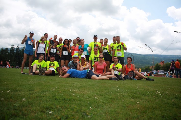 Meta umiejscowiona została na stadionie miejskim w Szklarskiej Porębie. Wbiegając na stadion już widziałam w oddali znaczną cześć żółtych koszulek, które wiwatowały i dopingowały „finiszujących” biegaczy.